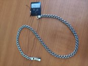 Полновесная цепочка. Массивная серебряная цепь Бисмарк с позолотой — это классика мужского ювелирного стиля, сочетающая в себе мощь, элегантность и статус. Цепочка выполнена из высококачественного серебра 925 пробы, покрытого золотом 585 пробы, весом 100 грамм и длиной 65 см — оптимальный выбор для мужчин, предпочитающих солидные и заметные украшения. Также при Вашем желании мы можем изготовить цепочку по Вашим требованиям.